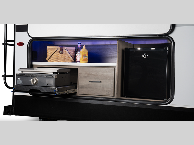 You'll find fresh interior décor and the modern technology that has been included will keep you running smoothly throughout your trips. The Magnum Truss roof system has been engineered to withstand 4,500 pounds of pressure which will help you feel safer during wind or snow storms. Each trailer includes a 200W solar panel for off-grid capabilities. Dark tinted windows give you added privacy and the linoleum throughout will be easy to clean!