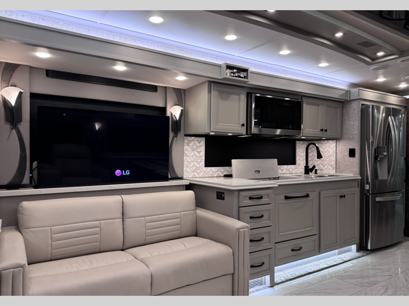 Adaptive cruise control, collision mitigation, and a tire pressure monitoring system helps you to safely arrive at each destination. The 10.0 kw Onan quiet diesel generator powers these units and Spyder multiplex system lets you control things at the touch of a finger. You'll love the new interior decor options, and the optional Pet Perks Package can be added if you're traveling with your furry friends!