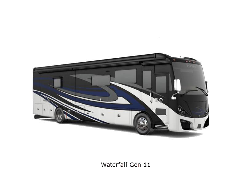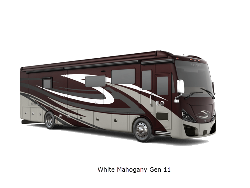 Sleeps 4 Slides 3 Length 37 ft 9 in Ext Width 8 ft 5 in Ext Height 13 ft 3 in Int Height 6 ft 11 in Interior Color Gelato, Mesa, Titanium Exterior Color Gen 10, Gen 11; Bordeaux, Waterfall, Frosted Granite, Nasa, White Mahogany. Midnight Blue Edition Hitch Weight 10000 lbs GVWR 40000 lbs Fresh Water Capacity 100 gals Grey Water Capacity 100 gals Black Water Capacity 55 gals Tire Size 295/80R 22.5 Furnace BTU 50000 btu Generator 10.0kW Onan Quiet Diesel Fuel Type Diesel Engine Cummins L9 Chassis Freightliner PowerGlide XC Raised Rail Rear Horsepower 450 hp Fuel Capacity 100 gals Wheelbase 222 in Available Beds King Torque 1250 ft-lb Refrigerator Type Stainless Steel Residential with French Doors and Bottom Freezer Refrigerator Size 22 cu ft Convection Cooking Yes Shower Size 31.75" x 40" Number of Awnings 2 Axle Weight Front 16000 lbs Axle Weight Rear 24000 lbs LP Tank Capacity 35.7 gals AC BTU 45000 btu Basement Storage 131 cu. ft. TV Info LR TV, BR Mounted TV, Ext. TV Awning Info Girard Power Patio and Window Washer/Dryer Available Yes Gross Combined Weight 50000 lbs Shower Type Shower w/Seat Electrical Service 50 amp Similar Floorplans
